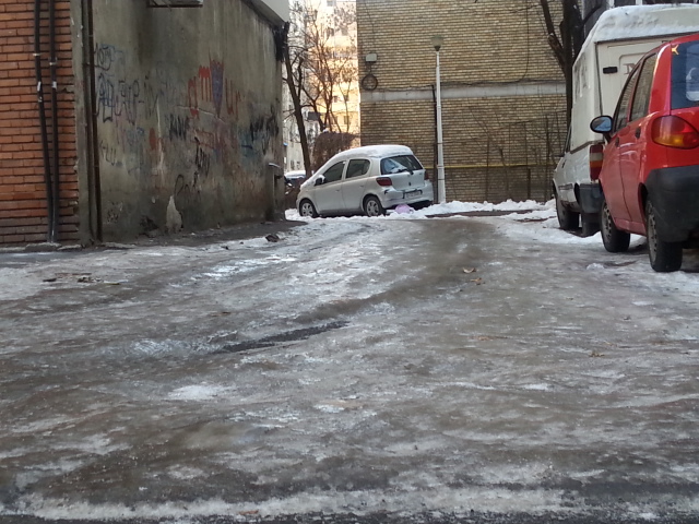 Eeeei, dar oricât de atentă aș fi, tot nu pot ocoli la infinit dealurile de gheață formate pe trotuare și pe străduțele lăturalnice.