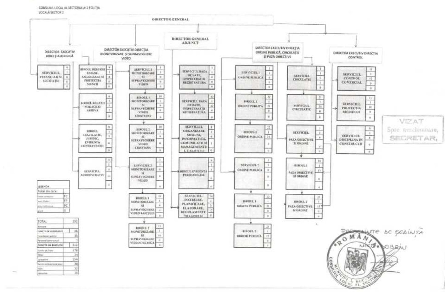 Aici aveți organigrama cu link și mai jos găsiți și o poză. Îmi cer iertate pentru calitate, dar așa ni le-a pus la dispoziție instituția.