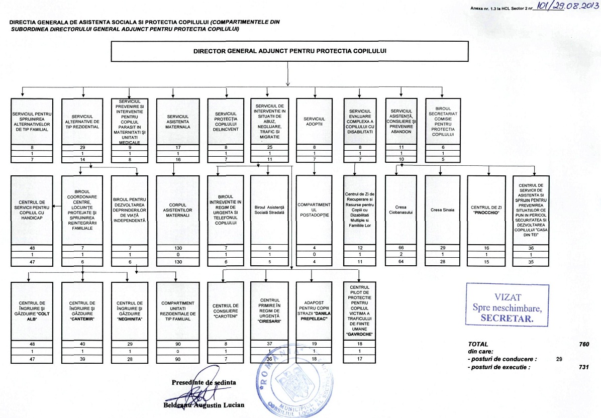 Există spre exemplu în cadrul DGASPC s2 un Birou de Asistență Socială Stradală. În acest Birou există, conform Organigramei instituției, 6 posturi, unul de conducere. (vezi poza)