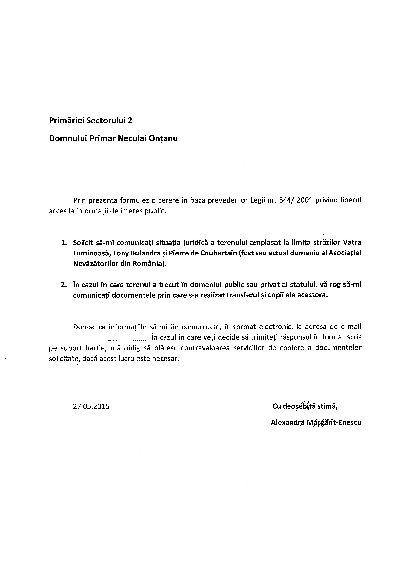 Astăzi, am cerut și Primăriei Sectorului 2 să-mi comunice situația juridică a terenului și documentele care atestă învârtelile făcute de-a lungul vremii.