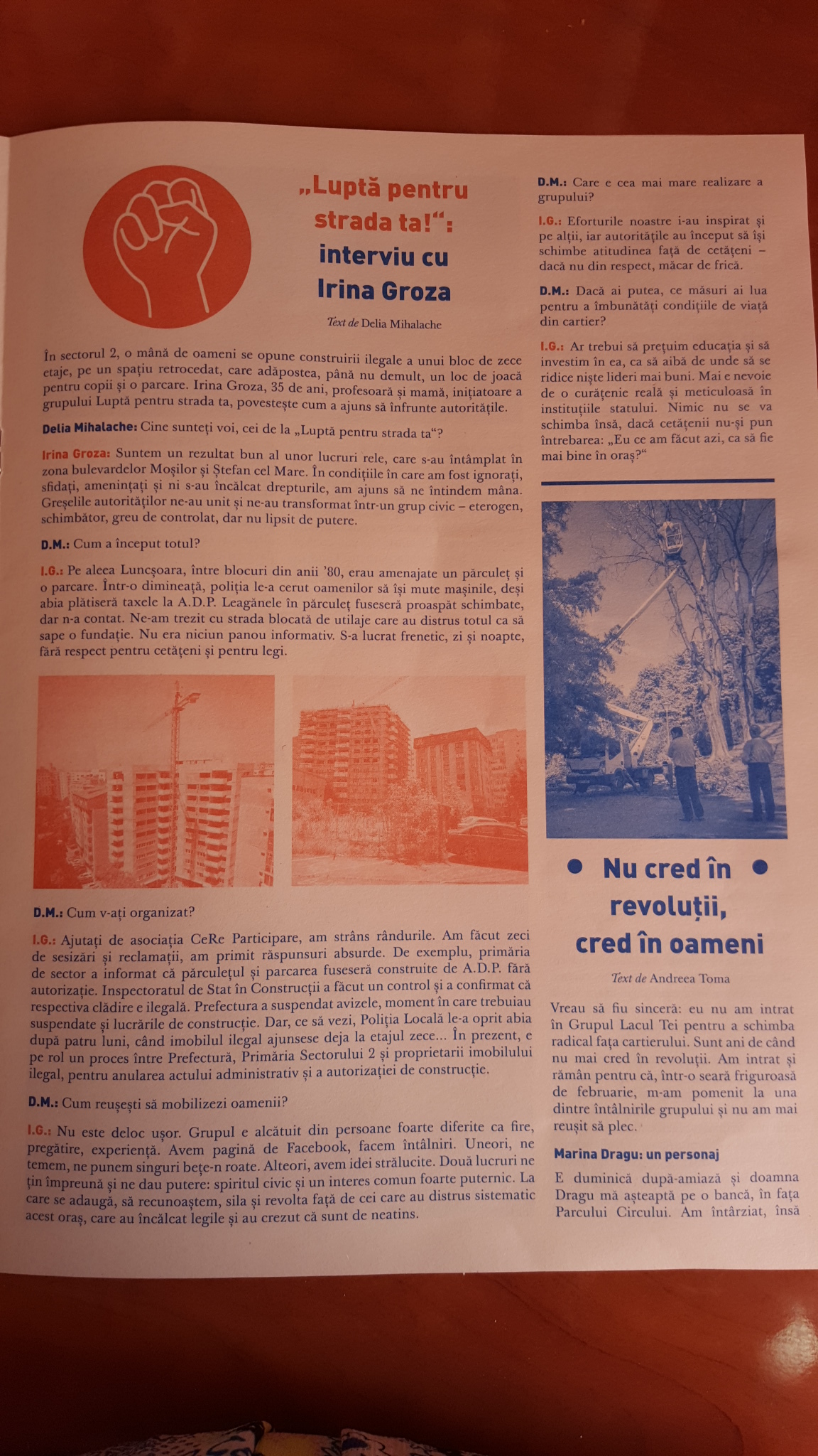 Cam neinspirată alegerea cromatică a ziarului și credeți-mă pe cuvânt pozele erau chiar bune, dar….au ajuns din păcate albastre și roșii. În fine, să nu pierdem esența. Mișto ziarul lor, cred că ar trebui să încerce să publice o asemenea fițuică mai des. Măcar trimestrial și să o distribuie mai bine, prin căsuțele poștale sau aiurea.