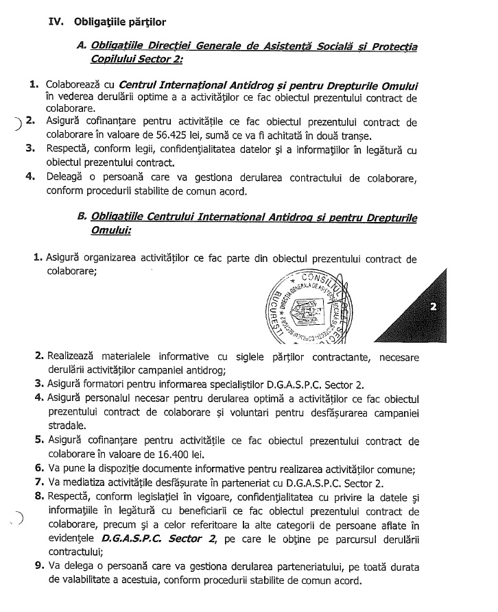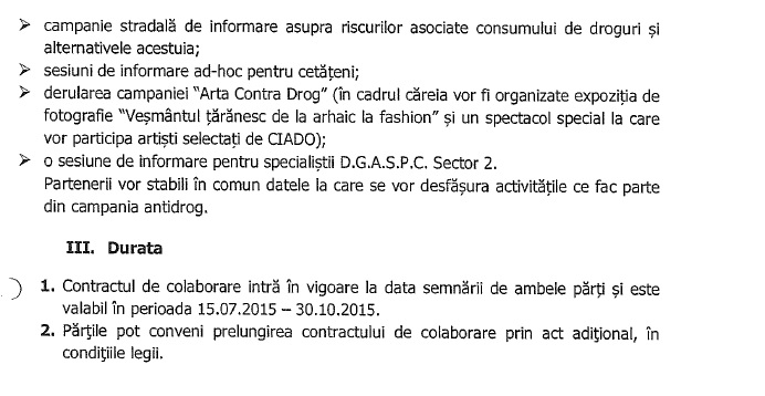 Aici s-au împotmolit și hârtiile și promptitudinea și transparența. Dar, într-un final, când rogi frumos, primești. 🙂 A venit și protocolul și ca să vezi, de fapt DGASPC S2 și implicit Primăria au alocat bani de la bugetul public pentru organizarea evenimentelor din ciclul Artă contra drog, deci și pentru concertul din Parcul Plumbuita. Și banii nu au fost puțini: 56.425 de lei, co-finanțare.
