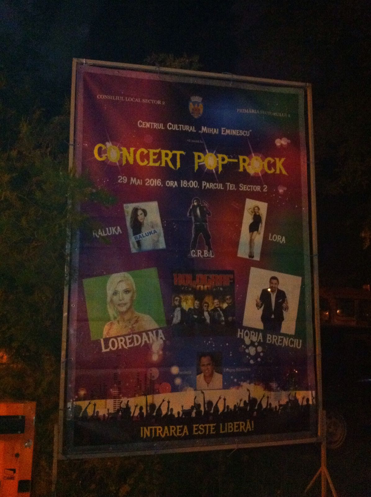 Am prieteni buni care stau în zonă și mi-au povestit că bubuiau geamurile. Vă dați deci seama ce sonorizare au avut oamenii la concert. Nu e de glumă cu lucrurile astea, când face Primăria un concert totul e la superlativ – sonorizarea, scena, onorariile. Păi nu? Ce? Dau banii de la ei din buzunar? Nu. Dau din al nostru. Și noi suntem mereu atât de proști că avem impresia că mergem gratis la evenimentele astea. Scrie chiar și pe afiș: Intrarea Liberă…. 😦
