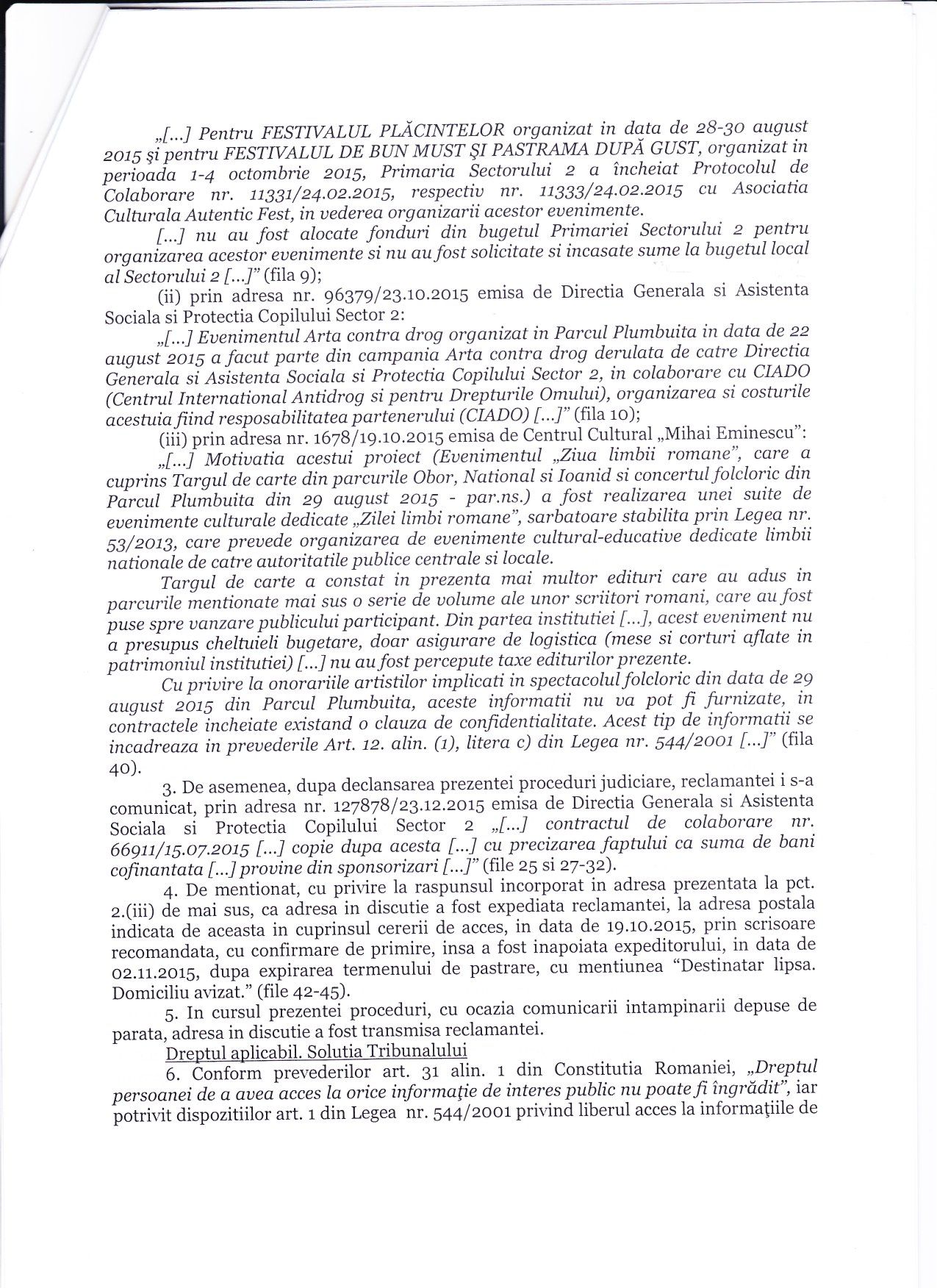 Din lipsa de respect faţă de drepturile mele a luat naştere acţiunea mea în Instanţă. Lipsa de respect a autorităţilor sectorului 2. Am cerut câteva informaţii simple, de bun simţ. Am cerut costuri şi hârtiile justificative pentru cheltuirea banului public. Primăria şi instituţiile aflate în subordinea Consiliului Local al Sectorului 2 au considerat că legea e făcută doar pentru proşti, nu şi pentru ele. Asta m-a deranjat enorm. Am decis să mă judec pentru câştigarea drepturilor mele. ŞI AM CÂŞTIGAT în Instanţă informaţiile solicitate.