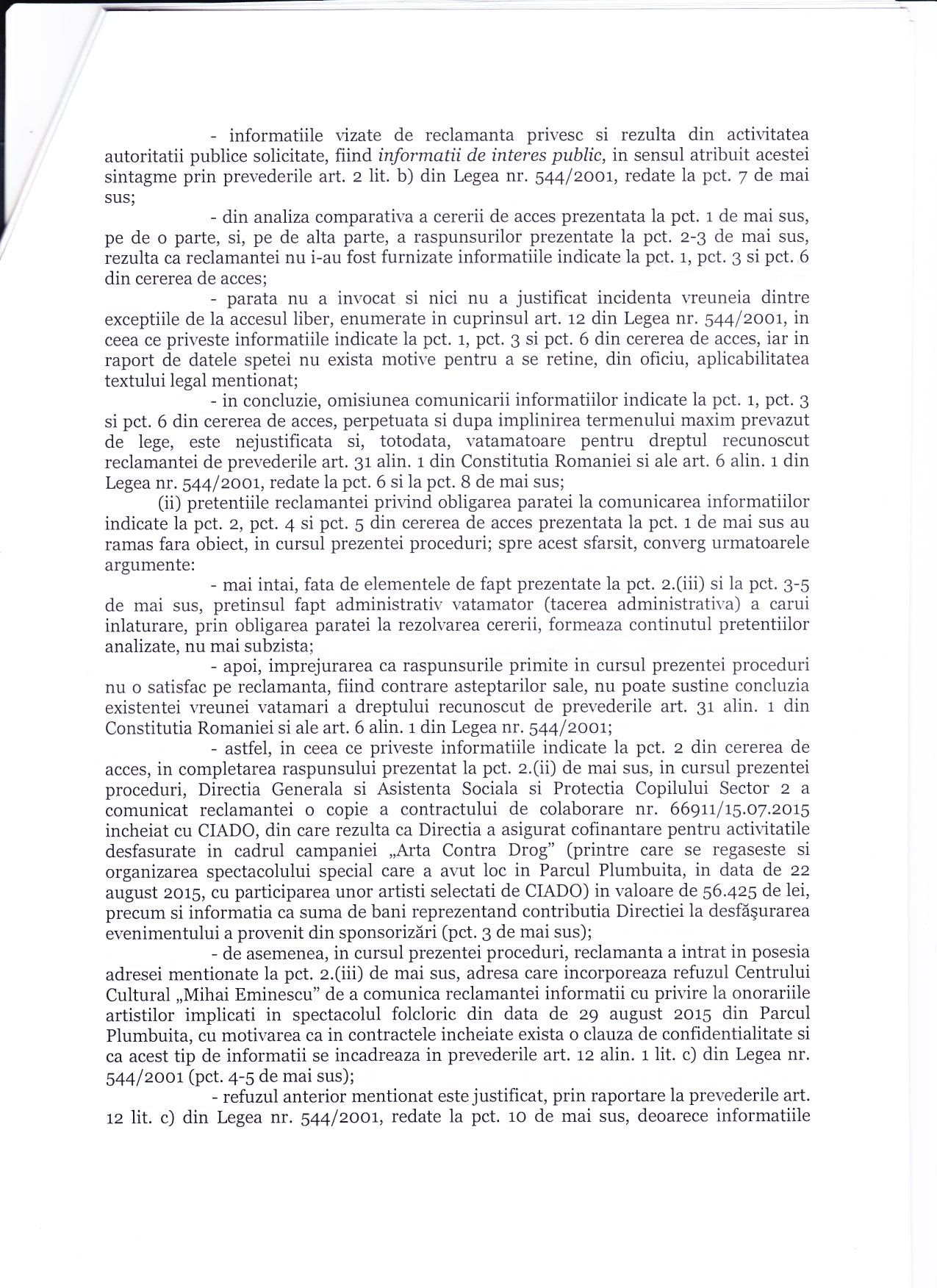 Pentru conformitate şi claritate, precizez că sunt şi câteva capete de cerere respinse. Acestea sunt referitoare la unele cerinţe ale mele din chemarea în judecată, cerinţe despre care ştiam însă că puteau fi respinse: poprire pe salariul Primarului, pentru fiecare zi de întârziere în comunicarea informaţiilor 🙂 sau amendarea instituţiei Primăriei 🙂 . Totodată, fac precizarea că nu am reuşit să obţin nici onorariile oferite artiştilor, individual. Se pare că acestea sunt protejate de prevederile Legii nr. 544/2001. 😦