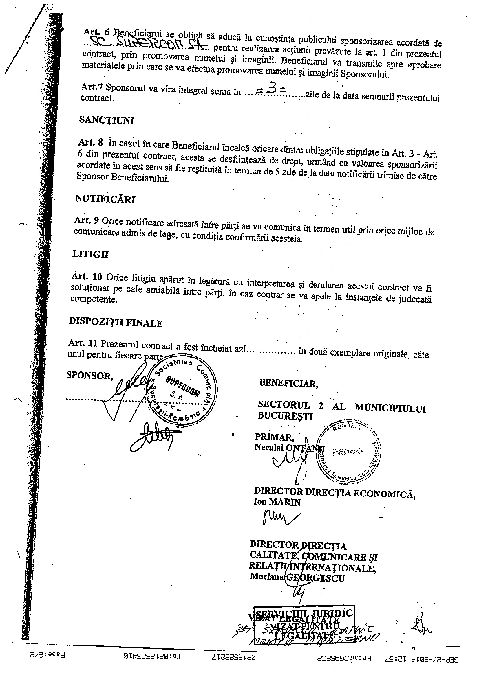 Acum, informația zilei: Contractul de sponsorizare al SUPERCOM SA cu Primăria sectorului 2. BUM! 🙂