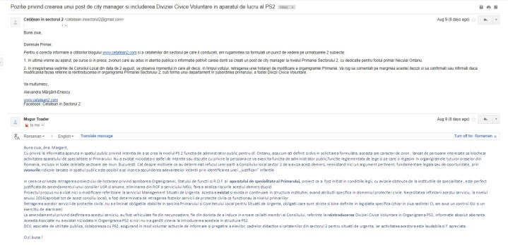 Mugur Mihai Toader: „Cu privire la informația aparută în spațiul public privind intenția de a se crea la nivelul PS 2 funcția de administrator public pentru dl. Onțanu, aceasta are caracter de zvon, lansat de persoane interesate să blocheze activitatea aparatului de specialitate al Primarului. Nu a existat niciodată o astfel de intenție sau discuție cu privire la persoana ce va exercita funcția de administrator public, funcție reglementată de lege și pe care o regăsim în organigramele tuturor orașelor din România, inclusiv în toate celelalte sectoare ale municipiului București. Cât despre motivele ce au determinat refuzul unei părți a Consiliului local sector 2 de a aviza acest demers, neexistând nici un argument pertinent, fundamentare legală sau de oportunitate, prin zvonurile ridicole lansate în spațiul public este posibil a se încerca ascunderea adevăratelor intenții prin identificarea unei justificări infantile”.