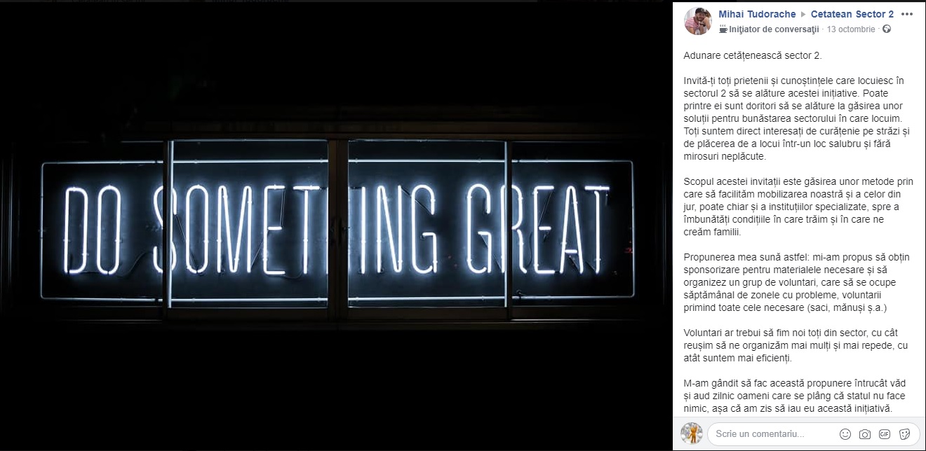 Pe Mihai nu-l cunosc. Am citit ce-a scris el pe unul din grupurile de cetățeni din sectorul 2. Și omul ăsta a reușit să-mi umple sufletul cu bucurie.