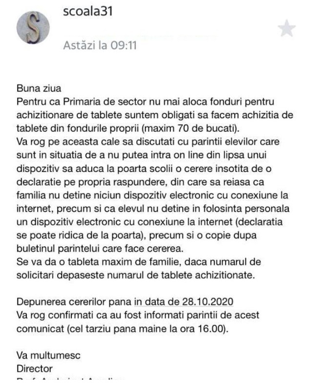 Iar astăzi, vrem să dăm tablete elevilor când noi habar nu avem câți copii sunt în sistem în acest moment. Iar Primăriile de sector și Ministerul Educației nu știu cum să se distrugă reciproc mai bine și să le distrugă și copiilor șansa la un parcurs educațional firesc.