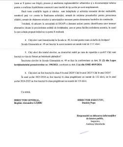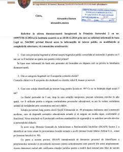 Am trimis, acum mai bine de o lună, o cerere de informații la Primăria sectorului 2 și la Inspectoratul școlar al municipiului București, sector 2 (de la care n-am primit răspuns), legată de nevoile de logistică și infrastructură pentru Școala Gimnazială nr. 49, supraaglomerată, cu elevi care învață în 3 cicluri.